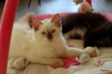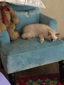 Patachou mérite bien son nom, il demeure ce qu’il était et se lâche de plus en plus quand il s’agit de squatter nos genoux, il est de la même veine que Perceval, Pavot et Pocahontas. Il est un gros nounours d’autant plus qu’il conserve une sacrée longueur d’avance sur sa fratrie quant à son poids et son gabarit.