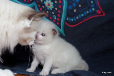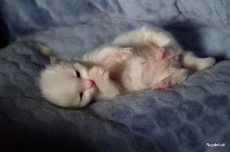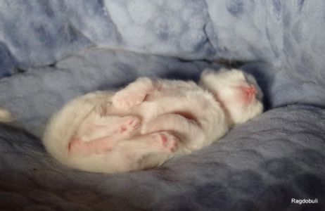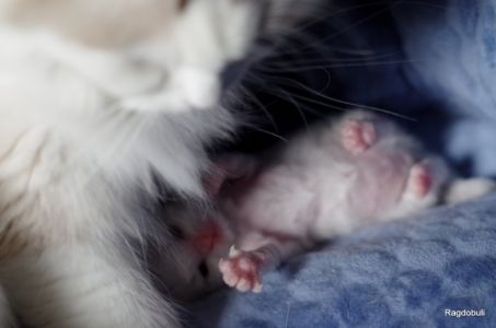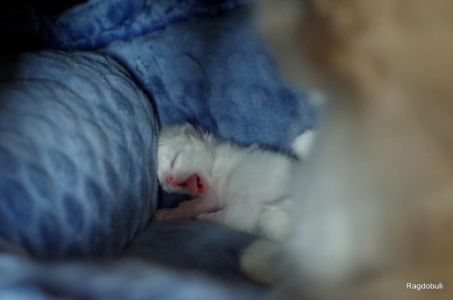 Oscar est la récompense ultime de sa maman Lynae, elle le montre plutôt bien et nous laisse seulement l’entrevoir au bout d’une semaine ! Oscar a d’ailleurs doublé son poids depuis, il est plutôt bavard mais sa maman ne lui laisse guère le temps d’avoir faim … étant seul, il est son chouchou par défaut, mais quel défaut ; ce petit garçon bleu (blue) est très prometteur.