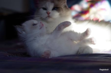 Des nouvelles du petit Oscar , il pousse comme un champignon d’automne, il donne la patte (chat-chien oblige …) et contrarie sa maman quand il part en exploration sans boussole ! Il n’en demeure pas moins casanier, pour ne pas dire très cul-cul maman !