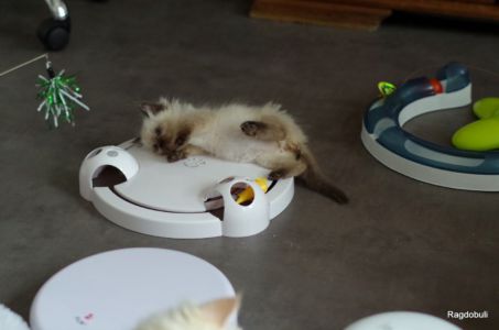 Malheureusement Pilou n’a pas eu de bol … on suppose, de concert avec notre véto, qu’il a subi une chute lors des nombreux déménagement de sa maman qui a mis un certain temps avant de s’apaiser ; on espère qu’il n’aura pas de séquelle mais pour le moment il accuse un retard de croissance et sa petite tête penche doucement sur le côté … cela n’enlève en rien à son dynamisme, grosso modo il visualise une trajectoire et se lance ! Il préfère sauter et courir comme s’il voulait compenser son handicap. Il a une force de caractère que l’on souhaite de tout cœur suffisante pour surmonter cette épreuve.