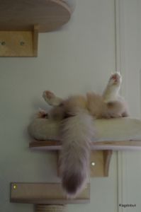 Aujourd’hui Molokaï prétend à la retraite. Elle n’a malheureusement jamais eu de bébés et ne sera jamais maman … la nature est parfois injuste ; elle n’a pas changé d’un pouce sauf qu’elle est un peu plus mémère, elle dort tous les jours avec nous et squatte notre chambre le reste de la journée ; de fait elle ne souhaite plus vivre en communauté, elle préfère la compagnie humaine et une certaine tranquillité. Par conséquent nous demanderons à sa nouvelle famille de ne pas avoir d’autres chats, mais la compagnie d’un chien ne l’a jamais dérangée.