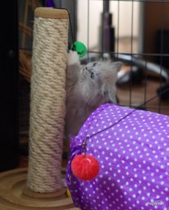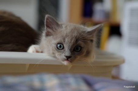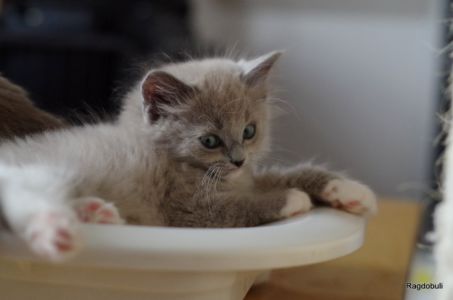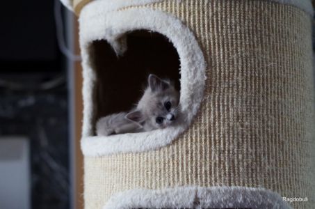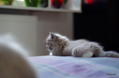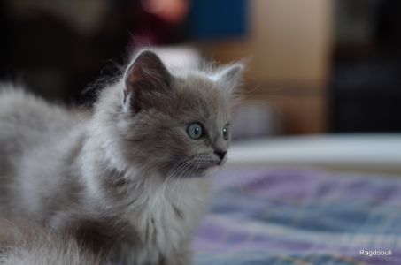 On peut dire que le petit vit sa vie, sans sourciller. Parfois il paraît un peu dans sa bulle sans toutefois dénigrer les stimuli alentours. Il est relativement calme et on aurait presque l’impression qu’il n’ose pas … ce n’est pas du snobisme puisqu’il se lâche dès qu’on le papouille, non , on pense qu’il est juste ébauché et qu’il a donc un potentiel que l’on a hâte de découvrir.