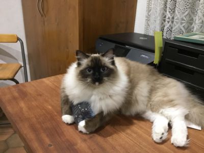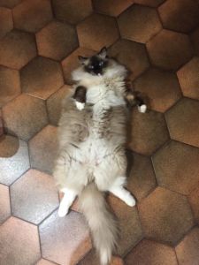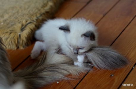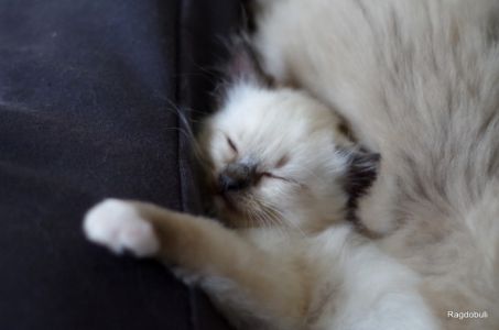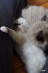 Alors ce petit n’est peut-être pas « orange » comme ses frères, mais il a bel et bien hérité du caractère légendaire du Ragdoll, c’est une perle, tel qu’on le prend tel qu’il reste !