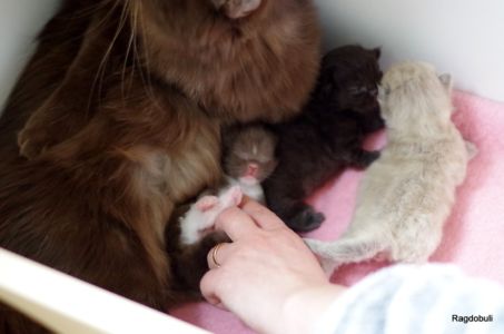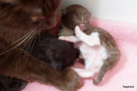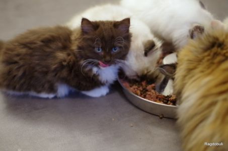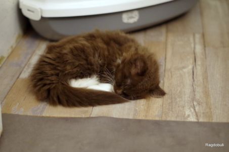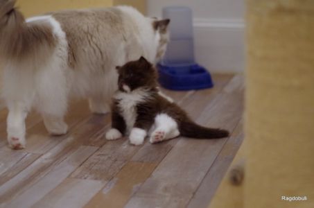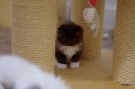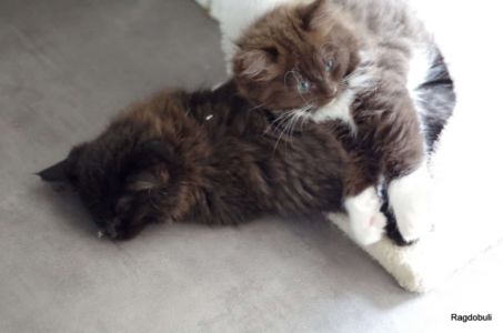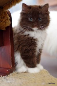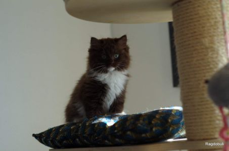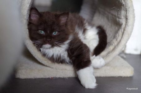 Orton est le portrait craché de sa maman, du chocolat intense mais auquel on ajoute un nappage de chocolat blanc … il est croquant ! Tout comme son frère Olblack, Orton est un Ragdoll solid, ils sont donc tous deux extrêmement rares, ce qui fait entre autre leur charme !