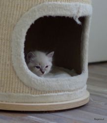 Philibert est probablement, et jusqu’à maintenant, le plus doux de nos chatons, pas un griffe plus haute que l’autre ! Il adore la position ventre à l’air par laquelle il sollicite quelques grattouilles de notre part.. Il dort beaucoup, il joue avec parcimonie et il est loin d’être une terreur au combat.. surement un futur grand observateur avec cette intelligence qui fait de l’être un chat posé et serein !