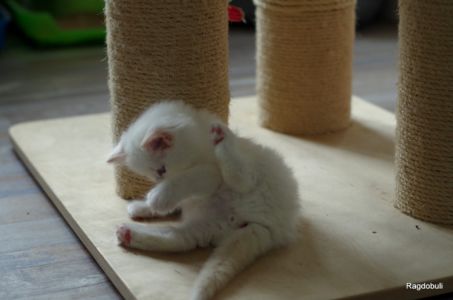 Eh oui, avec cette histoire de cream ou de red, de vrai tabby ou de tabby fantôme, de mitted ou non … sans compter la probabilité du high mitted … tout ceci nous tarabuste quelque peu. Physalis devrait être red et si c’est le cas, son nom lui siérait à ravir !