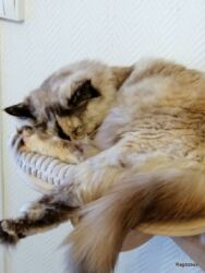 Si la jade arborait la couleur de notre Jade, elle en serait le symbole le plus précieux ! Jade incarne le Ragdoll par excellence, elle est belle comme un cœur et son pelage en rendrait plus d’un jaloux. Son caractère est à l’image d’un enfant regardant le monde pour la première fois, les yeux grands ouverts sur l’inconnu inviolé, quand ce dernier nous fait plisser les yeux, vieux boucs à qui on ne raconte plus d’histoire. Jade est tellement naïve que l’on surveille ses fréquentations ; toutes nos filles ne sont pas des anges cependant que sa candeur se heurte à l’hostilité d’aucunes, nous veillons à ce qu’elle ne se fasse pas écharper. Jade est douce et tendre avec nous, elle aime notre contact à défaut de donner son amour à ceux de son espèce et c’est pour notre plus grand plaisir.