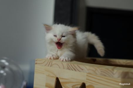 De l’orange comme on l’aime ! Red-Dingue est le seul red de tous nos chatons actuels et cette rousseur automnale détonne dans le groupe ! Pour le moment il se distingue par une curiosité tout en flegme, grosso modo il s’aventure en paresse !