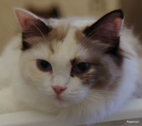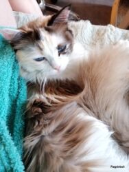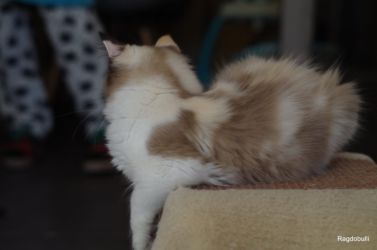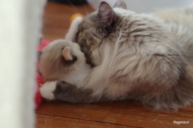 Ripley est un électron libre, elle ne dément pas la vivacité propre aux tortie ! Elle a du caractère, le sens de l’aventure et les choses simples se transforment vite en quête initiatique. Monter et descendre d’un obstacle ne se fait guère à la légère, c’est de l’escalade et de la descente en rappel ! Elle bouge et saute partout, elle n’a pas peur du combat car à l’image de sa sœurette Radote elle n’était pas la plus grosse de la fratrie ; elle a dû batailler sévèrement pour s’imposer et elle a conservé ce trait de caractère qui fait d’elle une combattante, une survivante au grand cœur ; eh oui, quand elle a décidé que vous êtes son centre d’intérêt du moment vous ne pouvez y échapper.. et c’est pour notre plus grand plaisir !