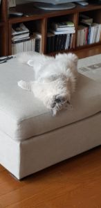Elle est terrible, extrêmement bavarde, dynamique, elle grimpe sur nous comme sur un arbre à chat et elle ne souhaite qu’une seule chose, être notre centre d’intérêt sans équivoque.