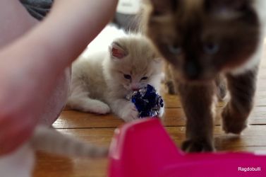 Scalène a cette beauté qui ne ressemble pas à une autre et dans son cas, le petit défaut qu’elle a la rend unique et particulièrement sublime ! On ne devrait pas se vanter d’un défaut mais la perfection a parfois une lourdeur académique telle qu’on en oublie l’essentiel. Scalène a un très bon caractère, elle n’est pas brutale ni vindicative, elle ne cherche pas la compétition et peut très bien s’amuser en groupe ou se délecter d’un moment de solitude, toute relative bien entendu. Elle ne se lancera pas tête baissée dans l’action si elle n’a pas observé préalablement les tenants et aboutissants de cette dernière. Scalène est délicate, douce et observatrice, elle est peu ou prou l’antithèse de sa sœur Souris-Cat !